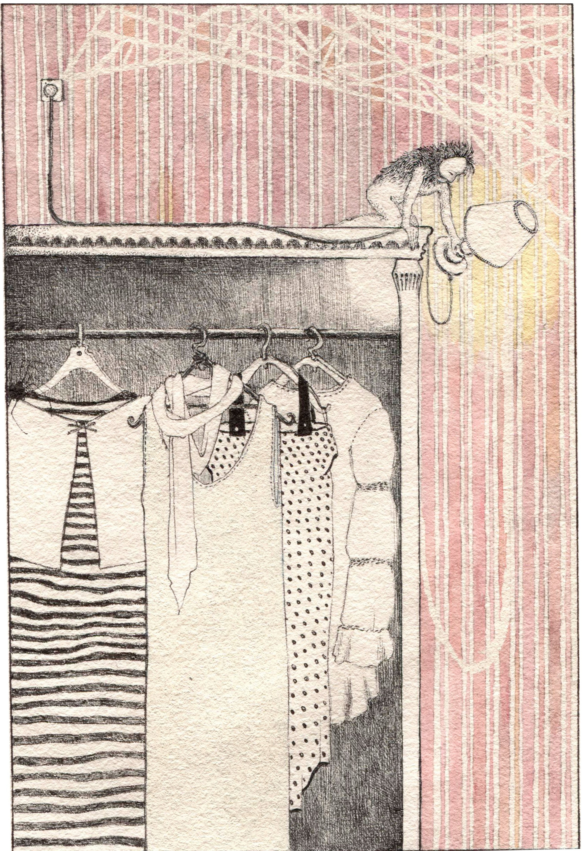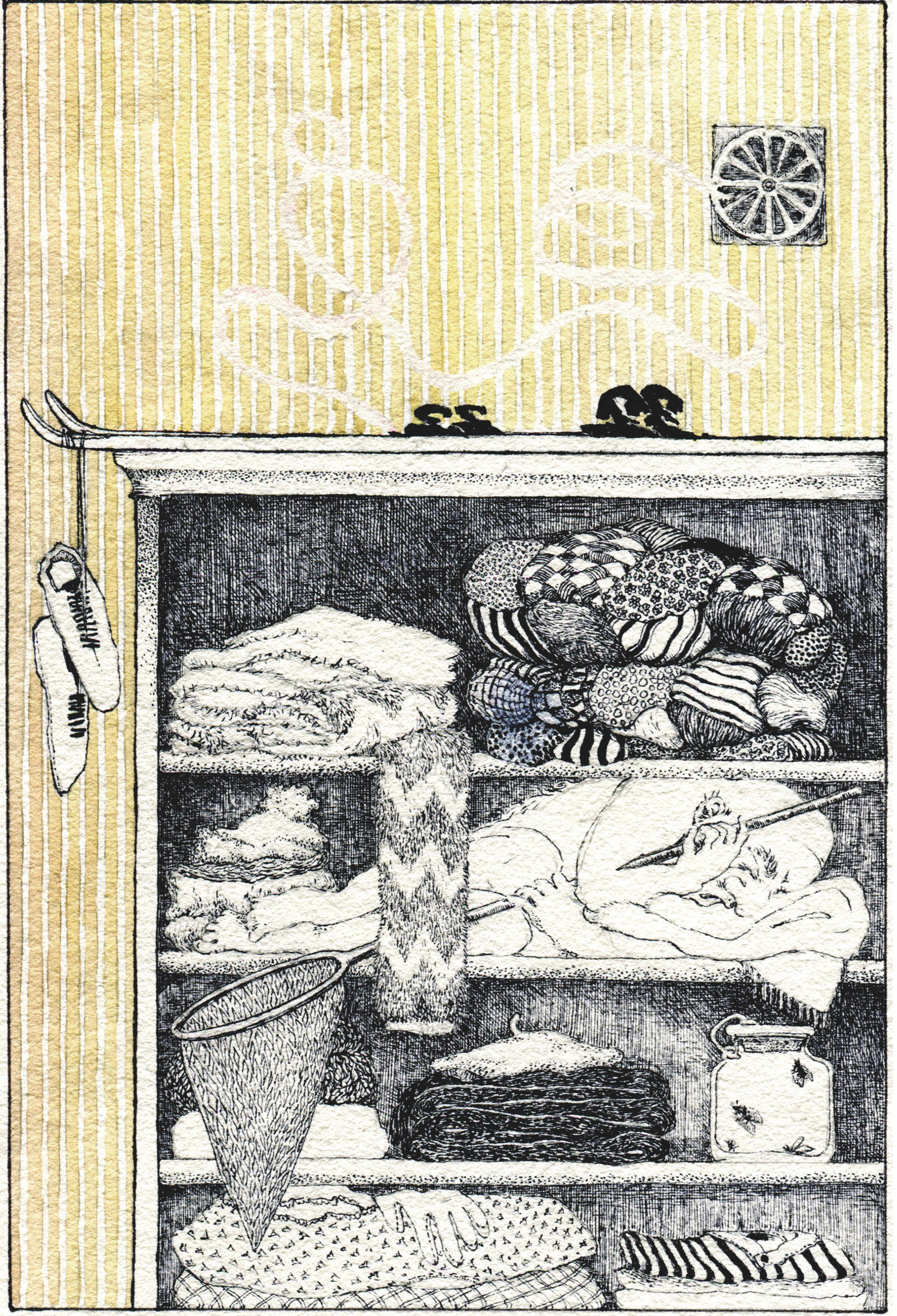 История о жизни вымышленных существ, вдохновленная местами, которые пришлось оставить позади: двери родительского дома, дачи, где прошло счастливое лето. Мы уходим, унося с собой не только частицу счастливой комнаты, наше присутствие и опыт навсегда изменили дух пространства. Под кроватью оставлен не только старый свитер, чтобы накормить моль, сами того не ведая, мы сотворили новый мир, который понятия не имеет, что ему теперь без нас делать.
